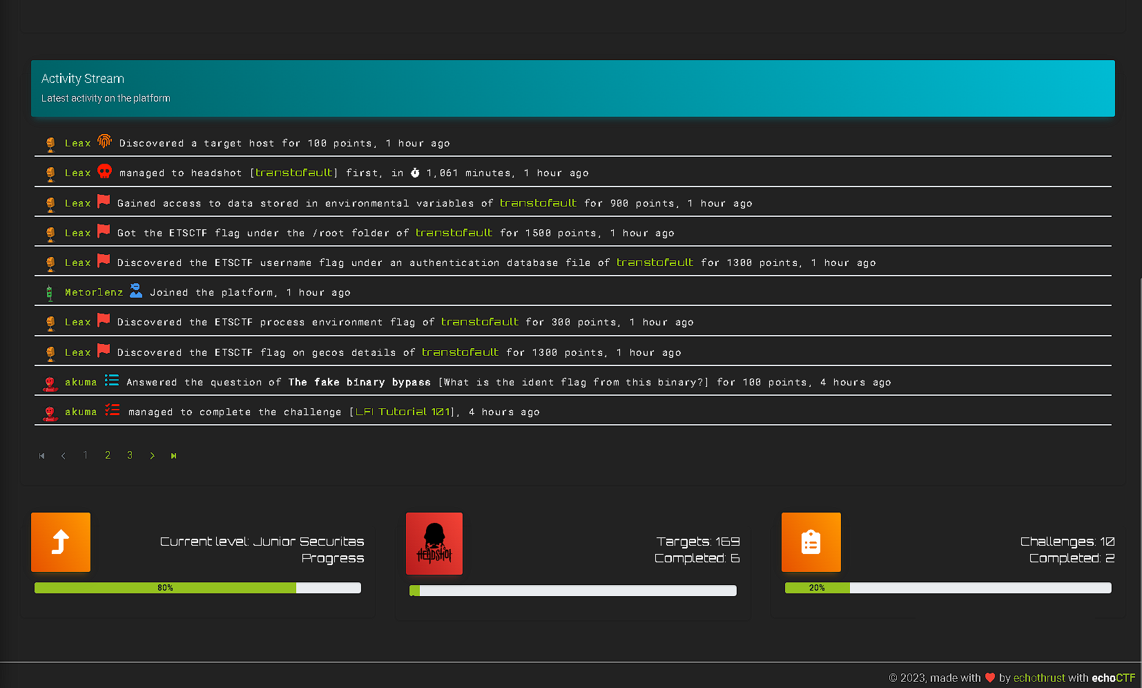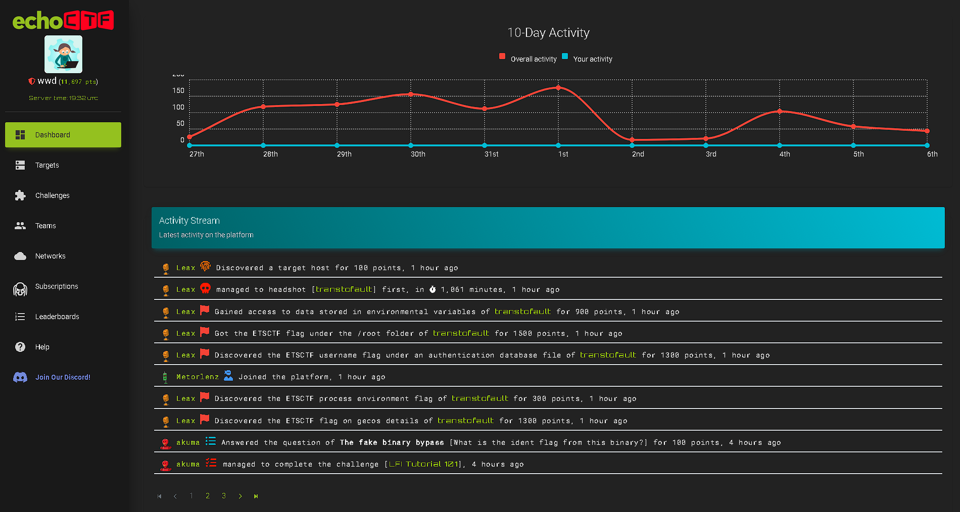 You can also monitor your progress, including the number of targets and challenges solved and their total points.
